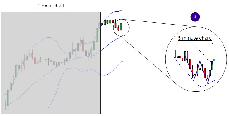 المثال 1 - ارتداد الاتجاه مع سياق الإطار الزمني الأصغر