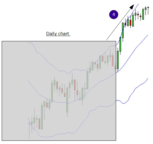 4. بعد ذلك، يواصل السعر ارتفاعه، بما يتماشى مع الاتجاه العام للرسم البياني اليومي.