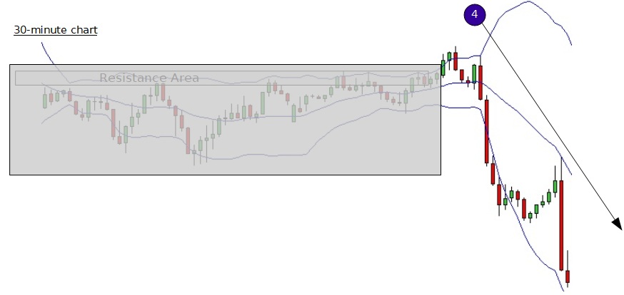 4. بدلًا من مواصلة الارتفاع، يعود السعر إلى النطاق ثم ينخفض.